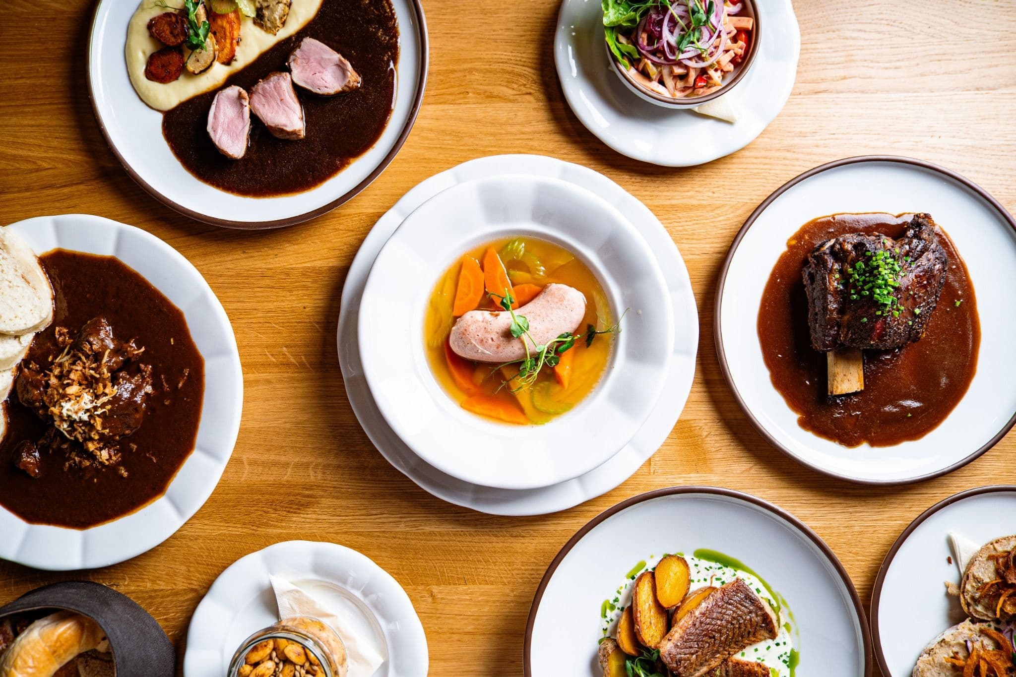K jídlu servírujeme poctivou českou kuchyni v modernějším pojetí – s chutí, ale bez zbytečných kudrlinek. Používáme suroviny od lokálních farmářů a pivem rozhodně nešetříme. Najdete ho nejen ve sklenici, ale i v omáčkách nebo v našem vlastním pivním pečivu.